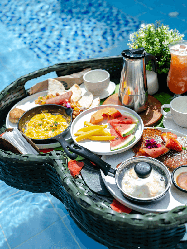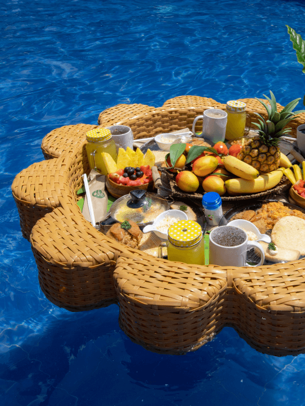 En Hotel Glamping La Polka te invitamos a disfrutar de nuestras canastas flotantes, una experiencia perfecta para consentirte sin salir de la piscina.